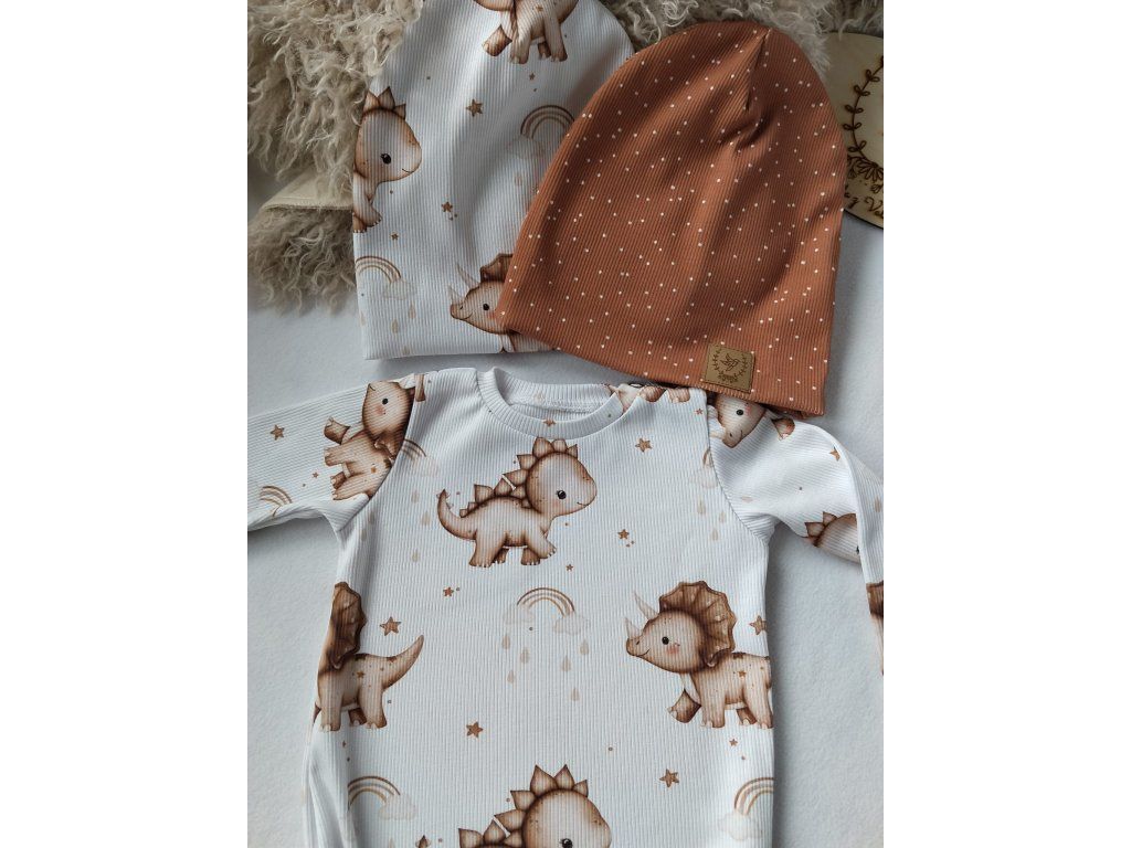 Čepice BEANIE z měkkého žebrovaného úpletu je ideální pro miminka od narození. Vzor DINO dodává čepičce hravý a něžný vzhled – skvěle ladí s dalšími kousky ze stejné kolekce.